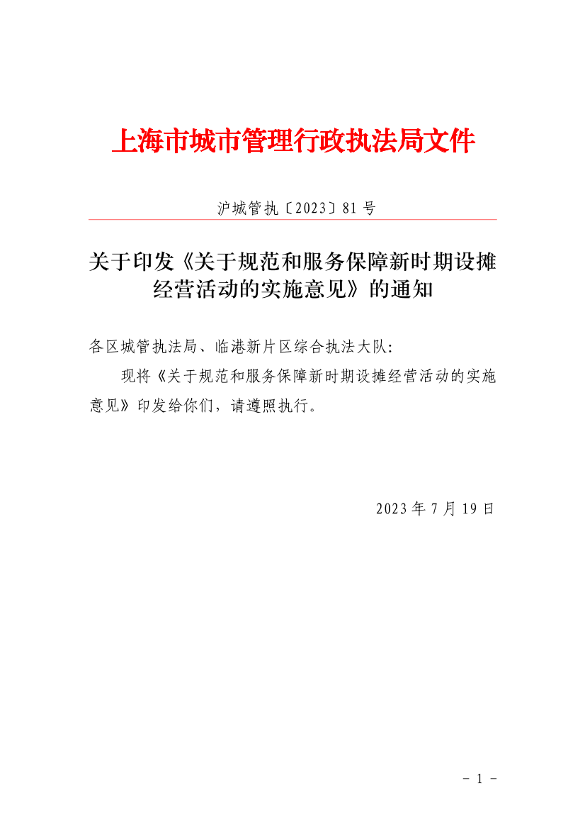现将《关于规范和服务保障新时期设摊经营活动的实施意见》印发给你们,请遵照执行。
