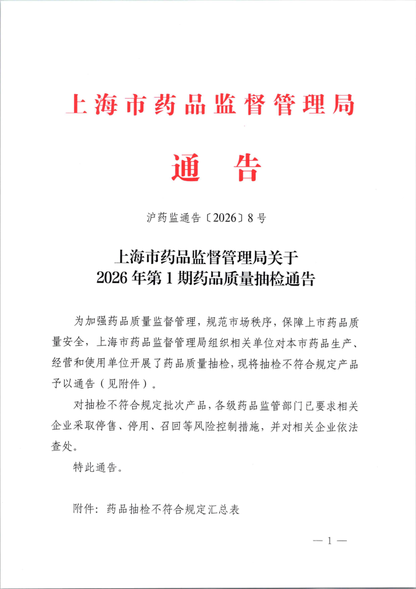 沪药监通告〔2026〕8号