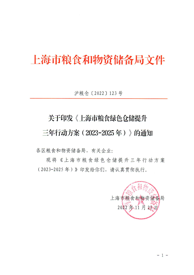 现将《上海市粮食绿色仓储提升三年行动方案(2023-2025年)》印发给你们,请认真贯彻执行。