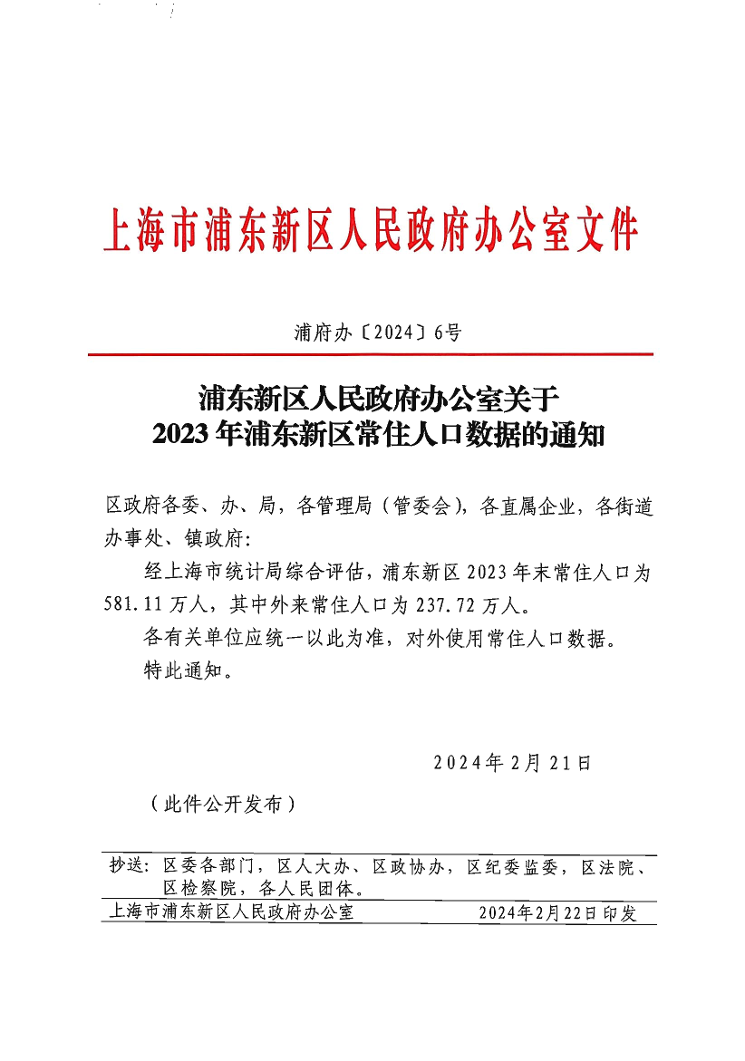 上海市浦东新区人民政府办公室 2024年2月22日印发 |