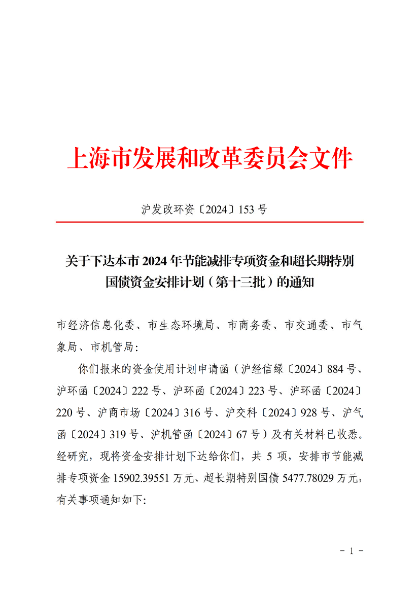 你们报来的资金使用计划申请函(沪经信绿〔2024〕884号、沪环函〔2024〕222号、沪环函〔2024〕223号、沪环函〔2024〕220号、沪商市场〔2024〕316号、沪交科〔2024〕928号、沪气函〔2024〕319号、沪机管函〔2024〕67号)及有关材料已收悉。经研究,现将资金安排计划下达给你们,共5项,安排市节能减排专项资金15902.39551万元、超长期特别国债5477.78029万元,有关事项通知如下: