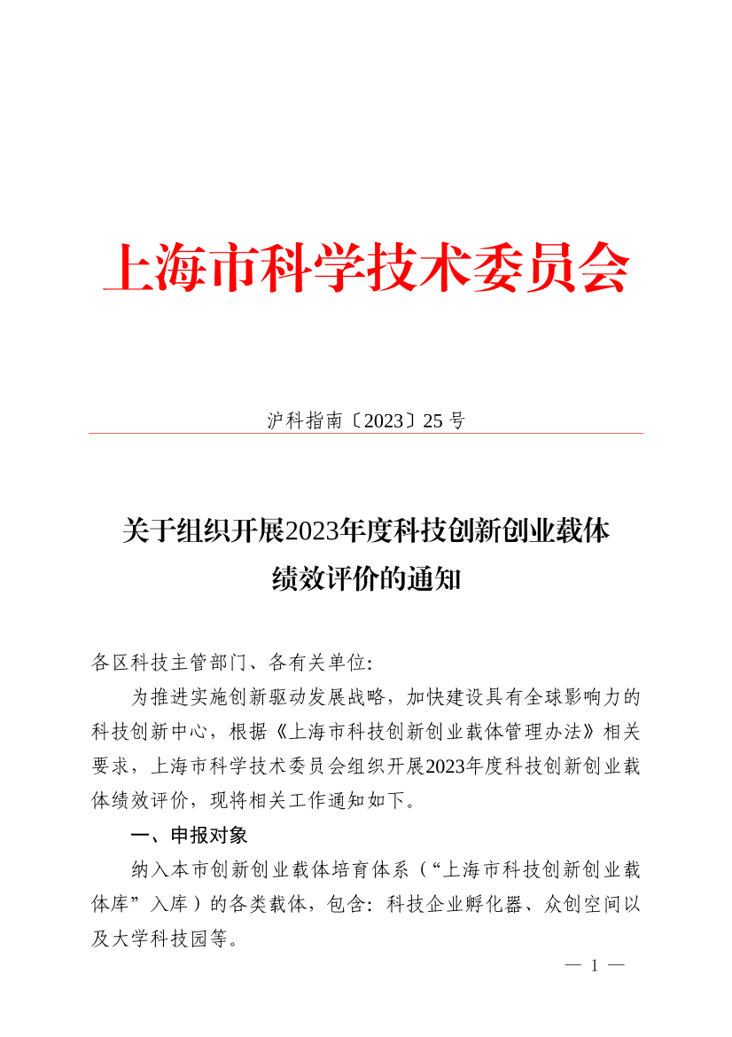 为推进实施创新驱动发展战略,加快建设具有全球影响力的科技创新中心,根据《上海市科技创新创业载体管理办法》相关要求,上海市科学技术委员会组织开展2023年度科技创新创业载体绩效评价,现将相关工作通知如下。