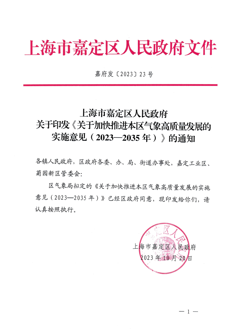 嘉定区关于加快推进本区气象高质量发展的实施意见(2023─2035年)