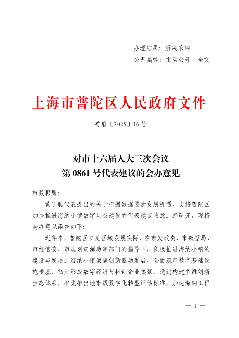 黄丁聪代表提出的关于把握数据要素发展机遇,支持普陀区加快推进海纳小镇数字生态建设的代表建议收悉。经研究,现将会办意见函告如下: