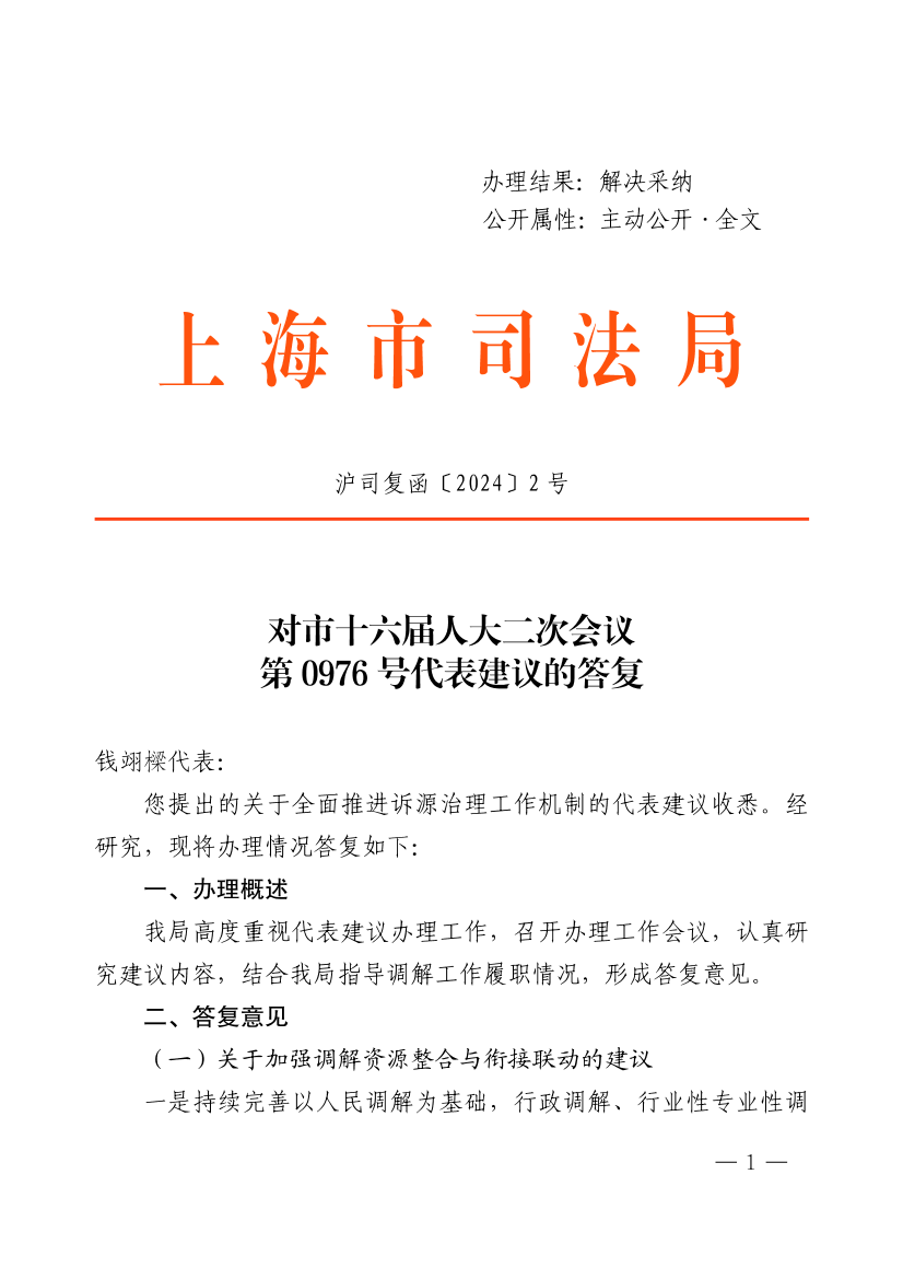 您提出的关于全面推进诉源治理工作机制的代表建议收悉。经研究,现将办理情况答复如下: