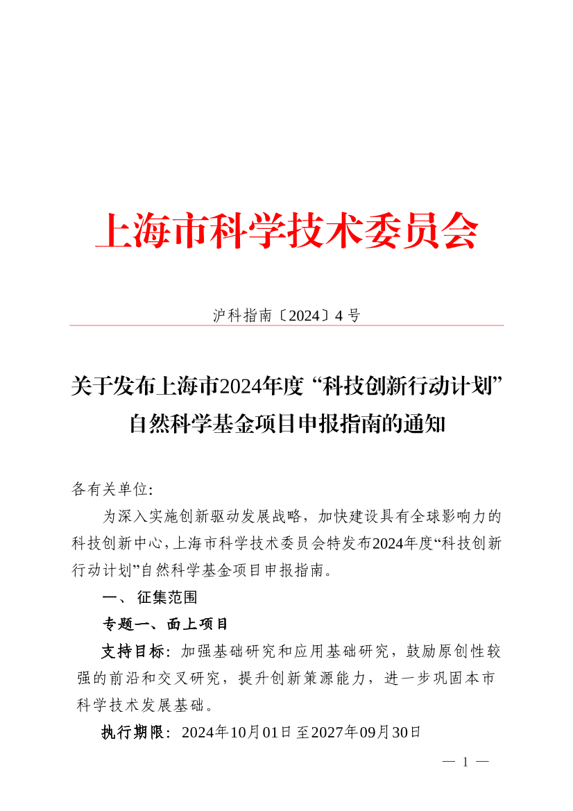 为深入实施创新驱动发展战略,加快建设具有全球影响力的科技创新中心,上海市科学技术委员会特发布2024年度“科技创新行动计划”自然科学基金项目申报指南。
