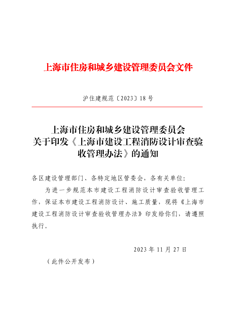 关于印发《上海市建设工程消防设计审查验收管理办法》的通知
