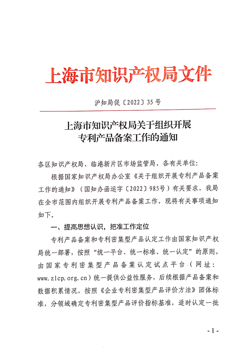根据国家知识产权局办公室《关于组织开展专利产品备案工作的通知》(国知办函运字〔2022〕985号)有关要求,我局在全市范围内组织开展专利产品备案工作,现将有关事项通知如下。