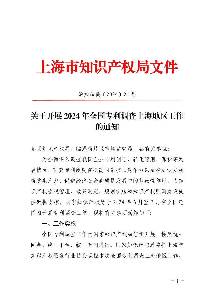 附件:1.《国家知识产权局办公室关于开展2024年全国专利调查工作的通知》;