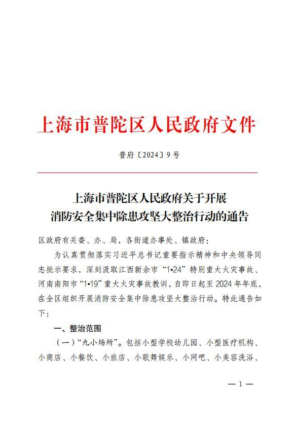 为认真贯彻落实习近平总书记重要指示精神和中央领导同志批示要求,深刻汲取江西新余市“1?24”特别重大火灾事故、河南南阳市“1?19”重大火灾事故教训,自即日起至2024年年底,在全区组织开展消防安全集中除患攻坚大整治行动。特此通告如下: