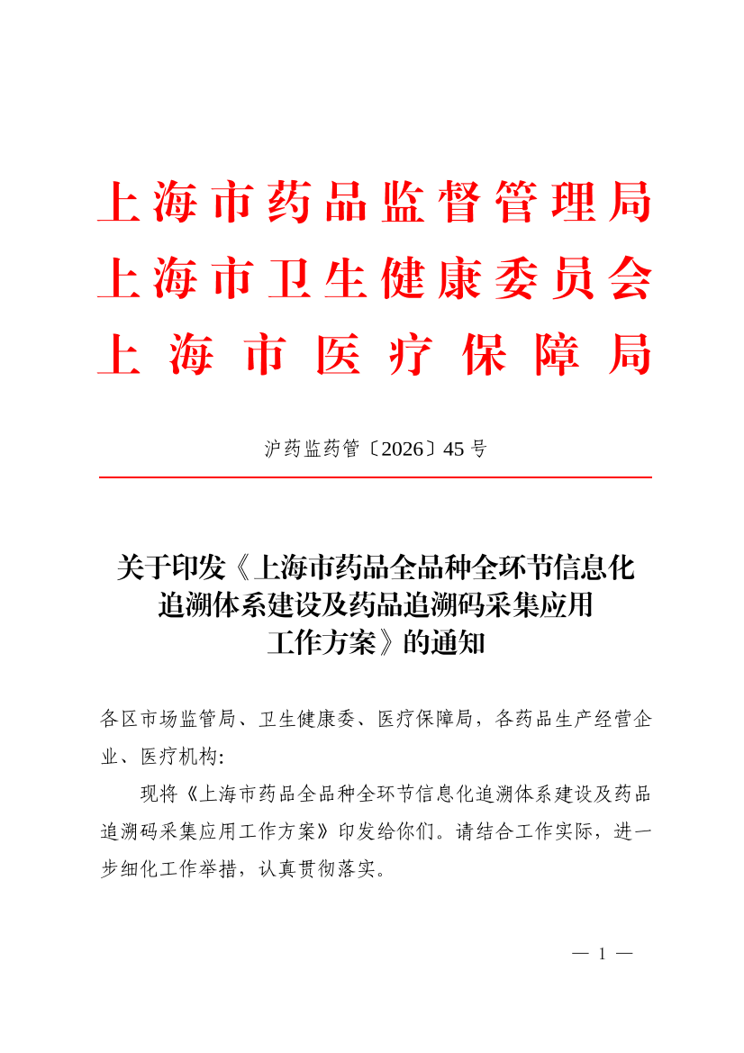 2026年4月1日起:除中药饮片、中药配方颗粒、医疗机构制剂、放射性药品、医用氧、原料药等品类外,本市所有在产品种须完成赋码激活、各级包装单元追溯码关联及追溯数据上传工作。