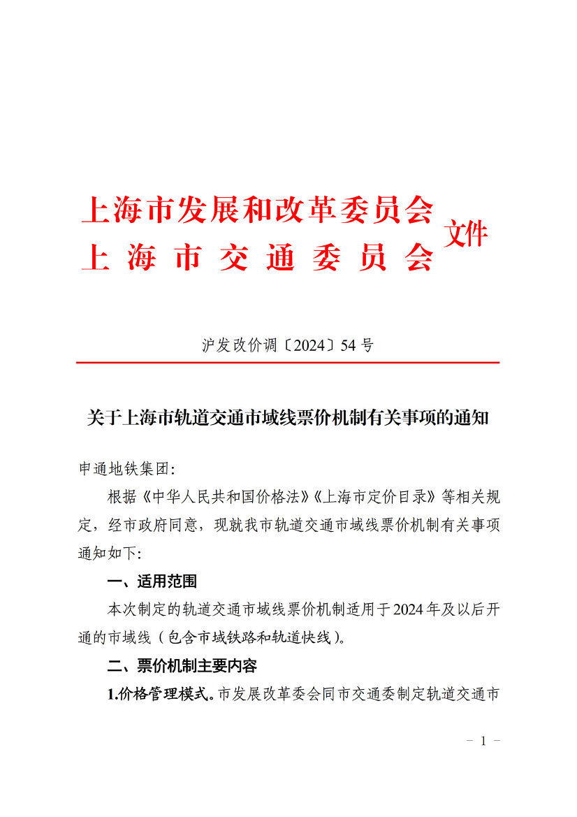 根据《中华人民共和国价格法》《上海市定价目录》等相关规定,经市政府同意,现就我市轨道交通市域线票价机制有关事项通知如下: