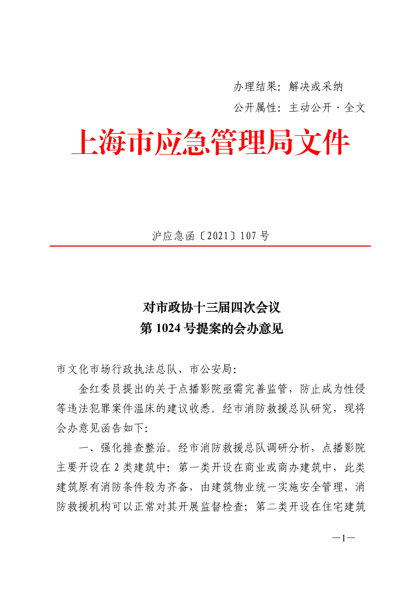 金红委员提出的关于点播影院亟需完善监管,防止成为性侵等违法犯罪案件温床的建议收悉。经市消防救援总队研究,现将会办意见函告如下: