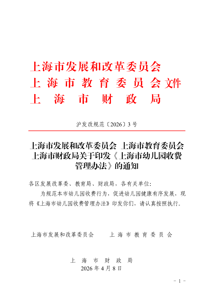 为规范本市幼儿园收费行为,促进幼儿园健康有序发展,现将《上海市幼儿园收费管理办法》印发你们,请认真按照执行。
