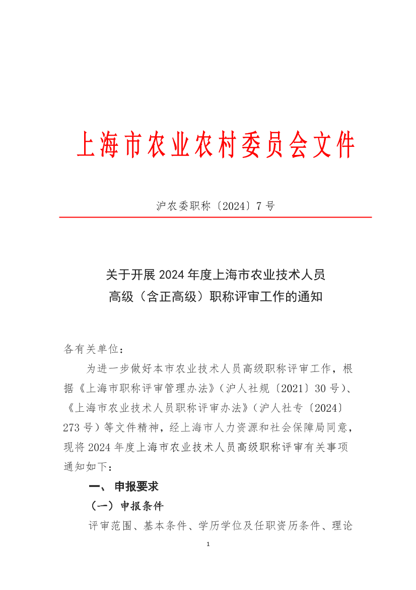 为进一步做好本市农业技术人员高级职称评审工作,根据《上海市职称评审管理办法》(沪人社规〔2021〕30号)、《上海市农业技术人员职称评审办法》(沪人社专〔2024〕273号)等文件精神,经上海市人力资源和社会保障局同意,现将2024年度上海市农业技术人员高级职称评审有关事项通知如下: