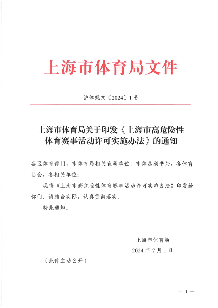 现将《上海市高危险性体育赛事活动许可实施办法》印发给你们。请结合实际,认真贯彻落实。