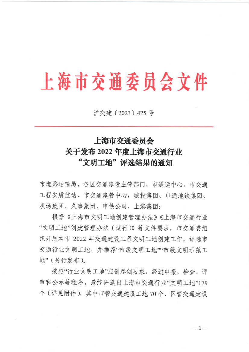 根据《上海市文明工地创建管理办法》《上海市交通行业“文明工地”创建管理办法(试行)》等文件要求,市交通委组织开展本市2022年交通建设工程文明工地创建工作,评选市交通行业文明工地,并推荐“市级文明工地”“市级文明示范工地”(另行发布)。