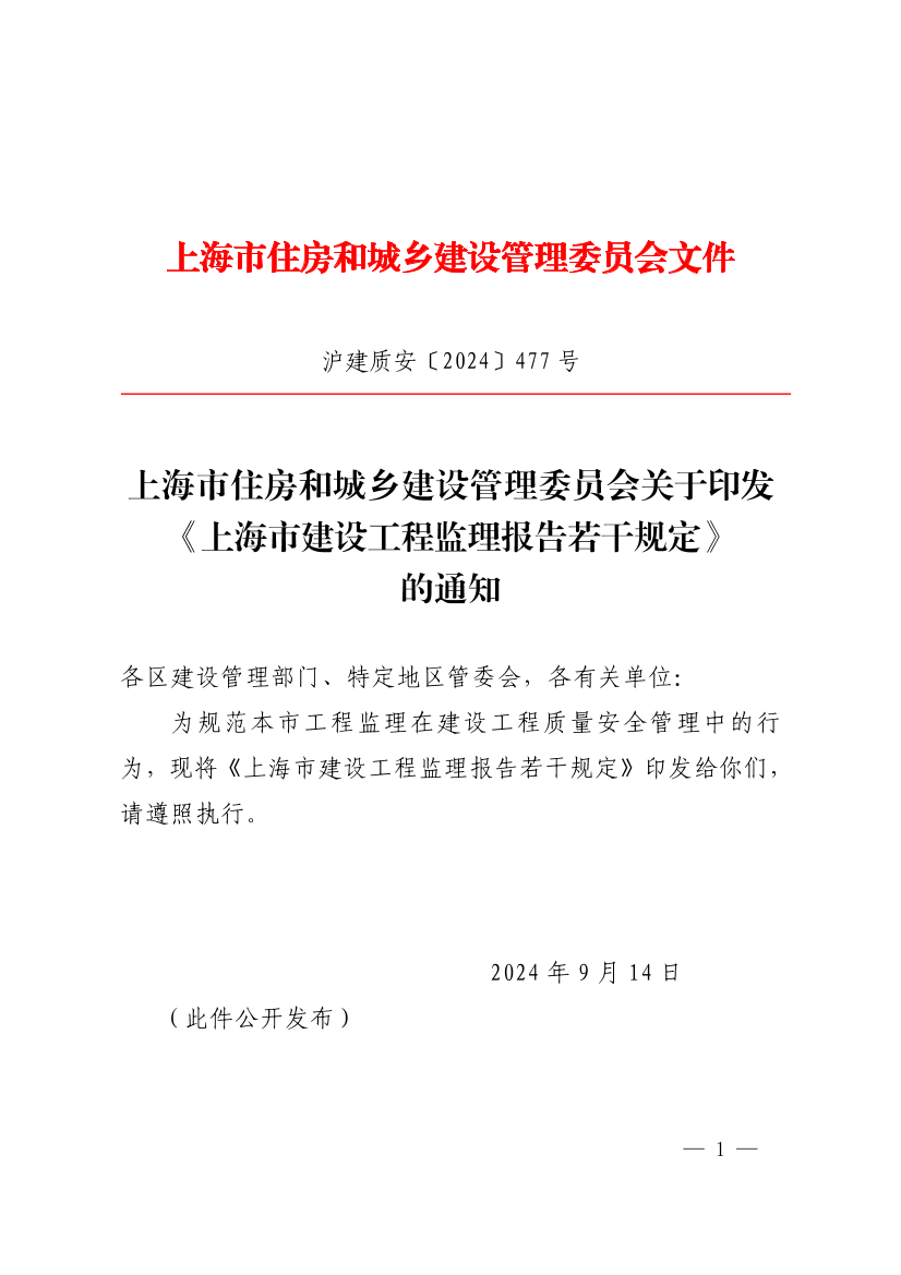 关于印发《上海市建设工程监理报告若干规定》的通知