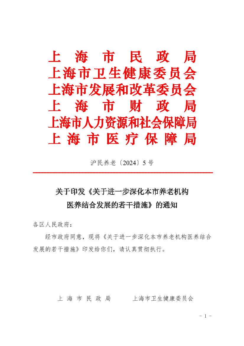 关于进一步深化本市养老机构医养结合发展的若干措施