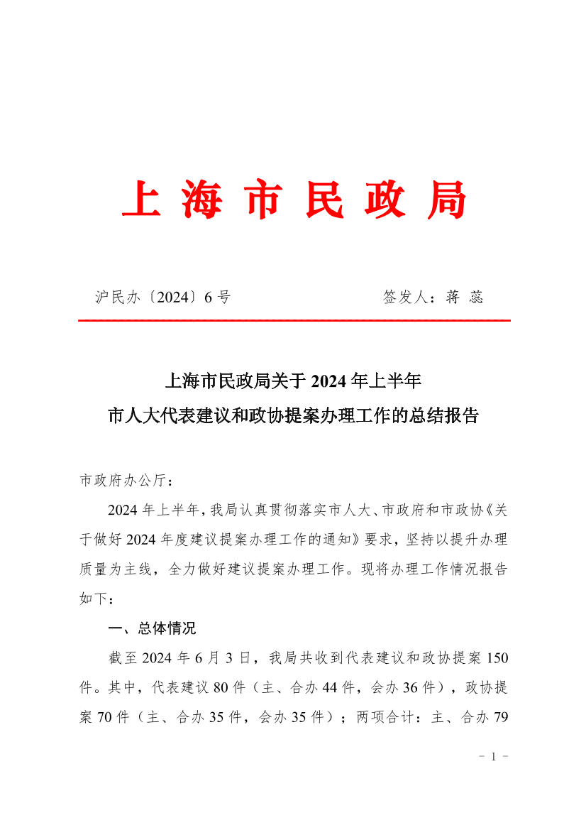 下一步,我们将认真贯彻落实市委、市政府关于建议提案办理工作的部署要求,将建议提案办理作为改进和提升工作的重要举措,以高质量办理推动上海民政事业高质量发展。