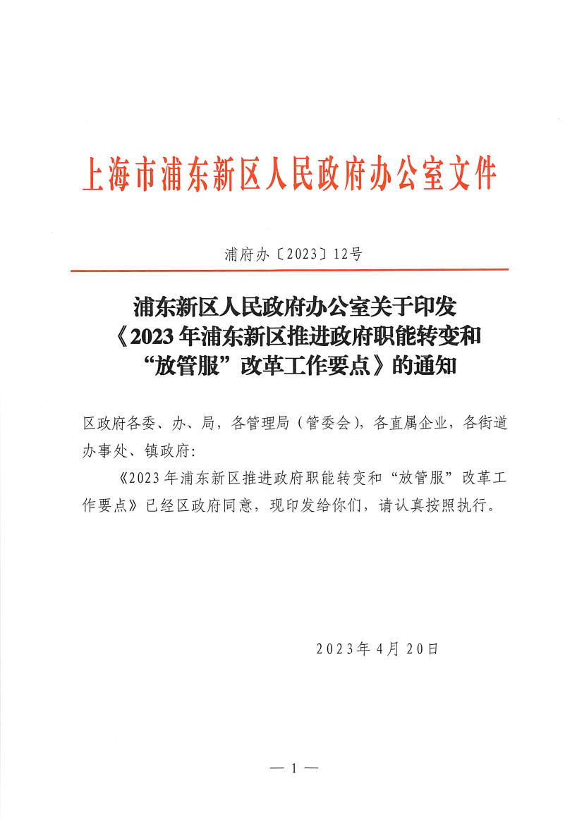 | 上海市浦东新区人民政府办公室 2023年4月23日印发 |