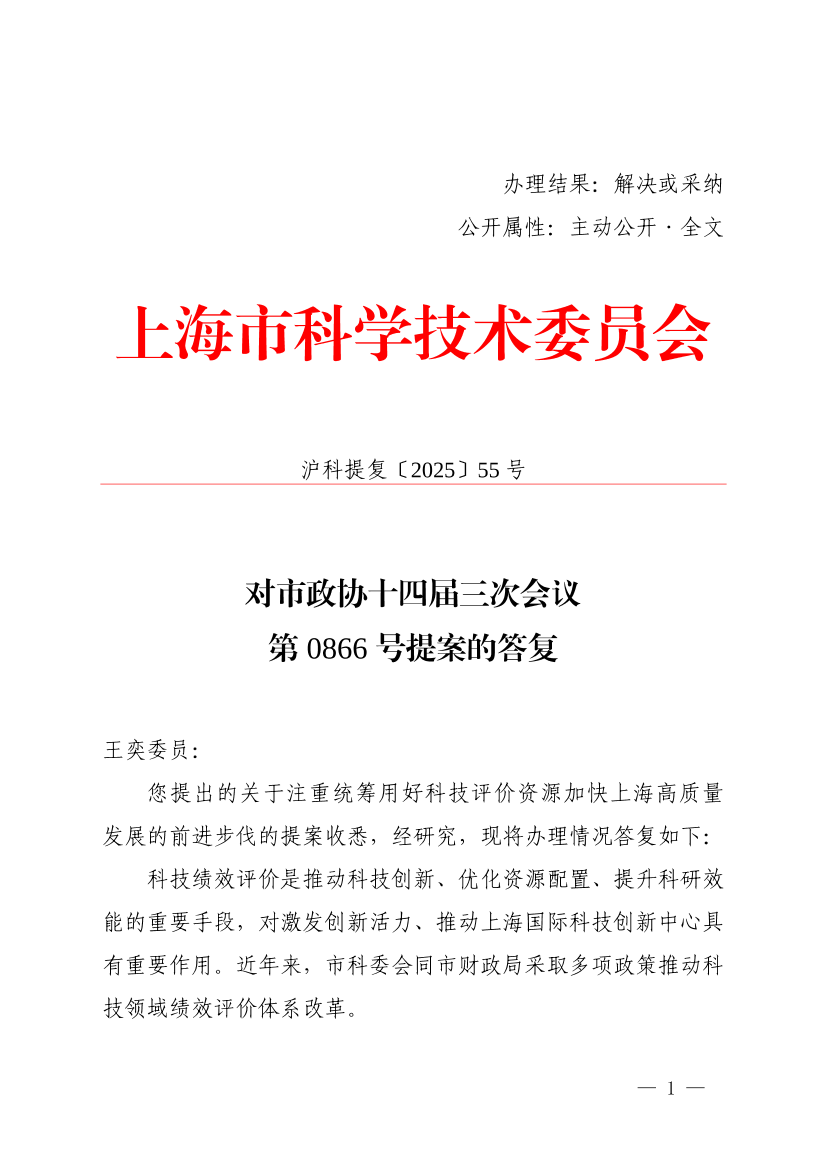 您提出的关于注重统筹用好科技评价资源加快上海高质量发展的前进步伐的提案收悉,经研究,现将办理情况答复如下: