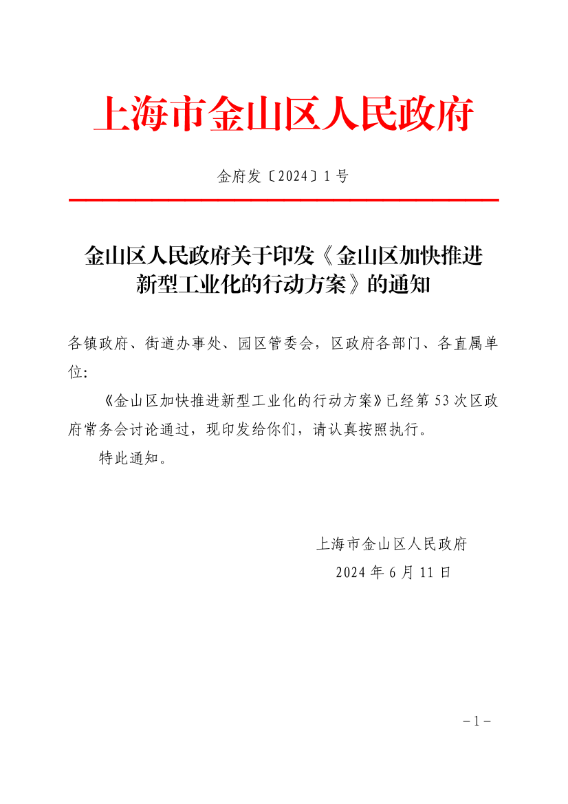 金山区加快推进新型工业化的行动方案