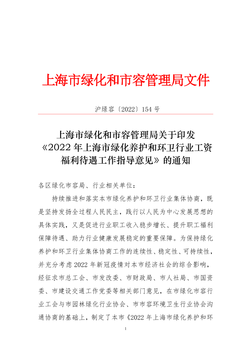 附件:2022年上海市绿化养护和环卫行业工资福利待遇工作指导意见