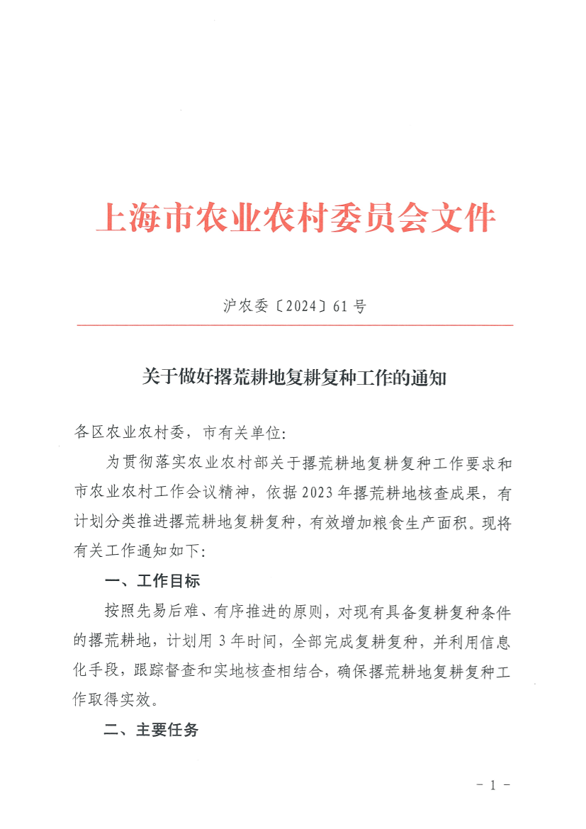 为贯彻落实农业农村部关于撂荒耕地复耕复种工作要求和市农业农村工作会议精神,依据2023年撂荒耕地核查成果,有计划分类推进撂荒耕地复耕复种,有效增加粮食生产面积。现将有关工作通知如下: