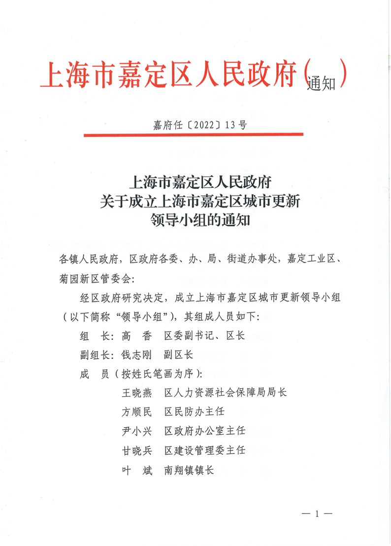 经区政府研究决定,成立上海市嘉定区城市更新领导小组(以下简称“领导小组”),其组成人员如下: