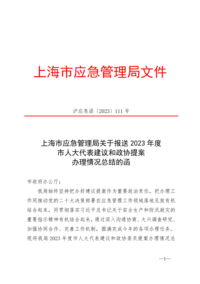 我局始终坚持把办好建议提案作为重要政治责任,把办理工作同推动党的二十大决策部署在应急管理工作领域落地见效有机结合起来,同贯彻落实习近平总书记关于安全生产和防汛救灾的重要指示精神有机结合起来,通过深入沟通协商、大兴调查研究、加强协同合作、完善工作机制,圆满完成今年的各项办理任务。现将我局2023年度市人大代表建议和政协委员提案办理情况总结函报如下。