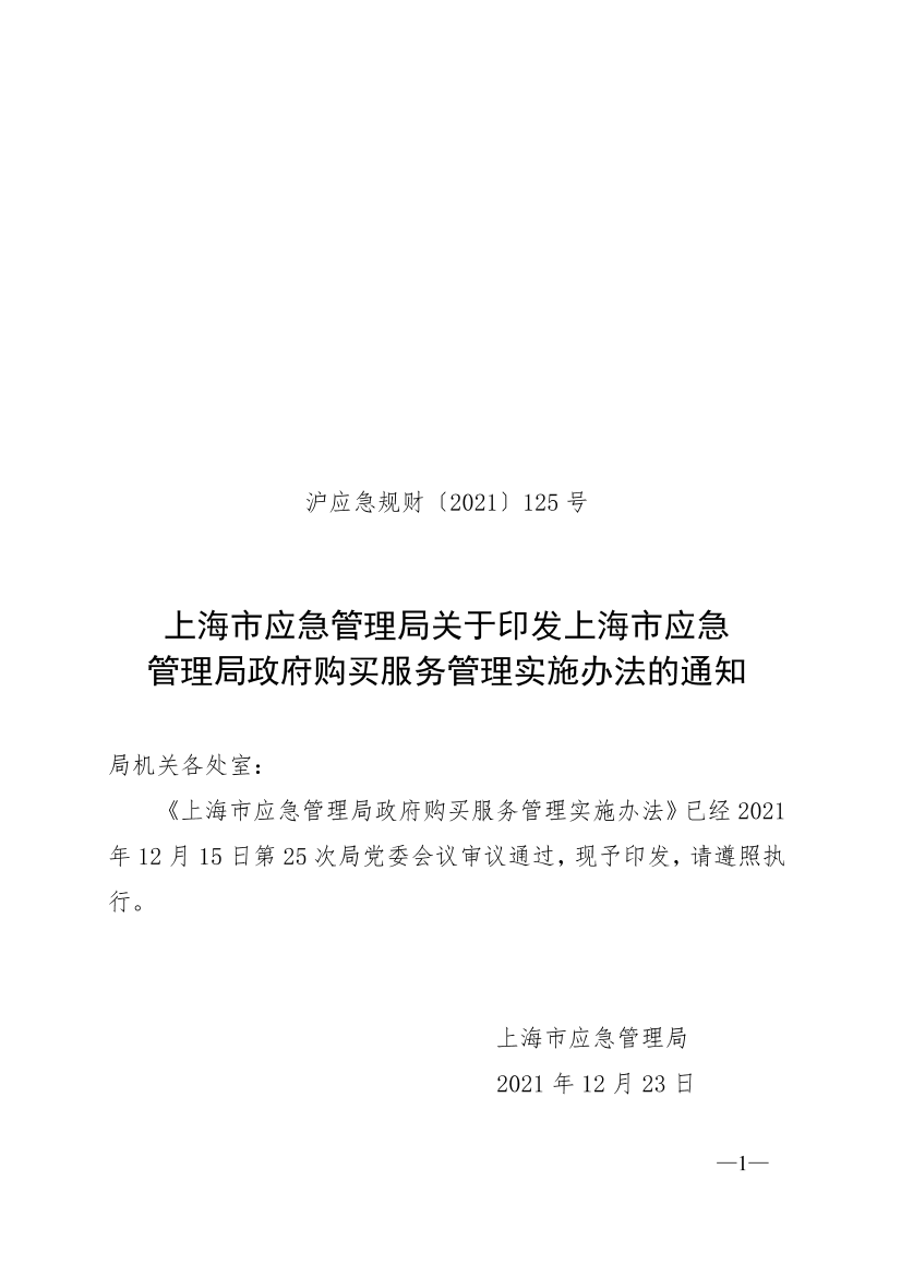 《上海市应急管理局政府购买服务管理实施办法》已经2021年12月15日第25次局党委会议审议通过,现予印发,请遵照执行。