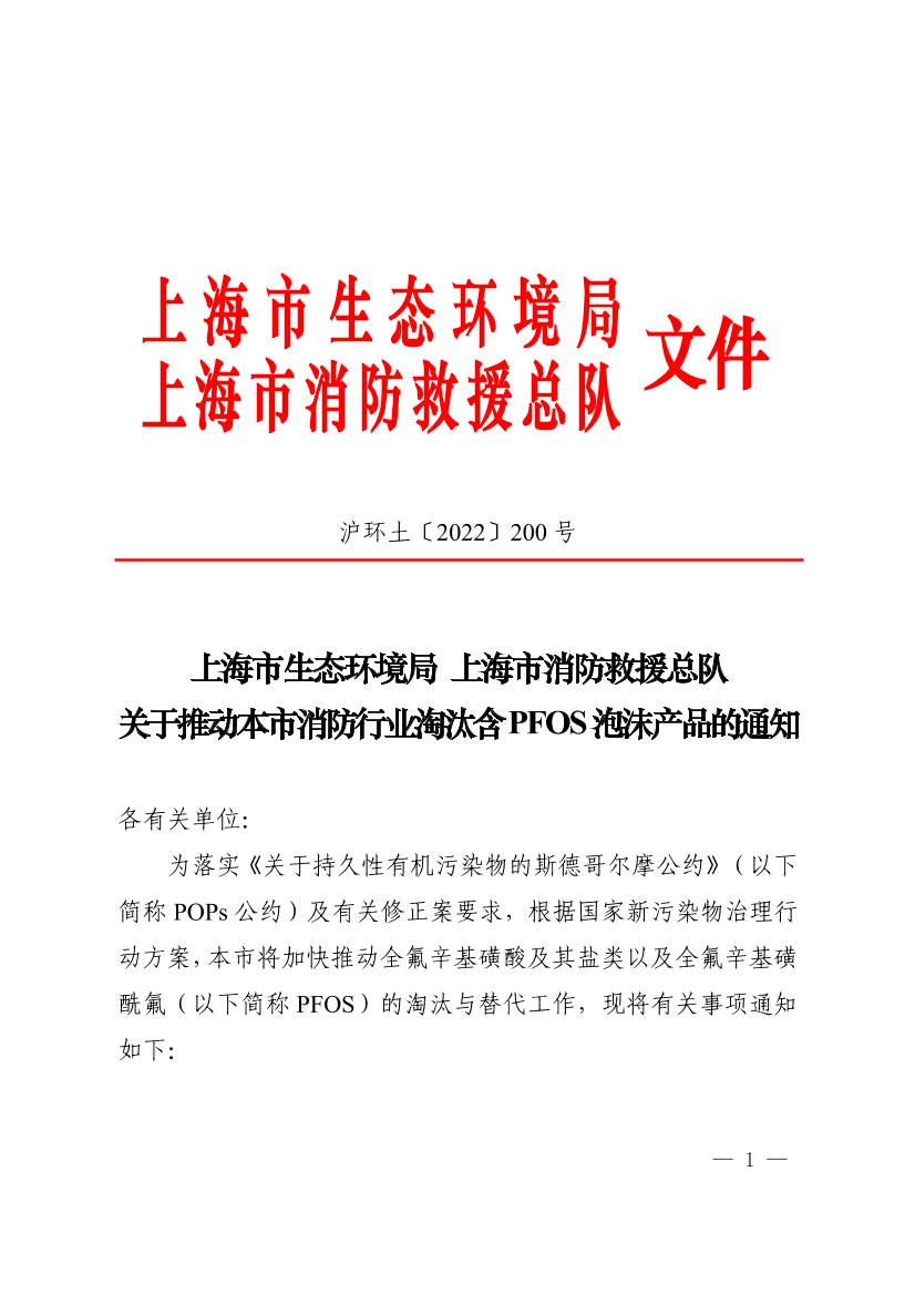(一)即日起,本市从源头提前淘汰含PFOS类泡沫产品的采购,本市供应商停止复配加工使用和销售含PFOS类泡沫产品。