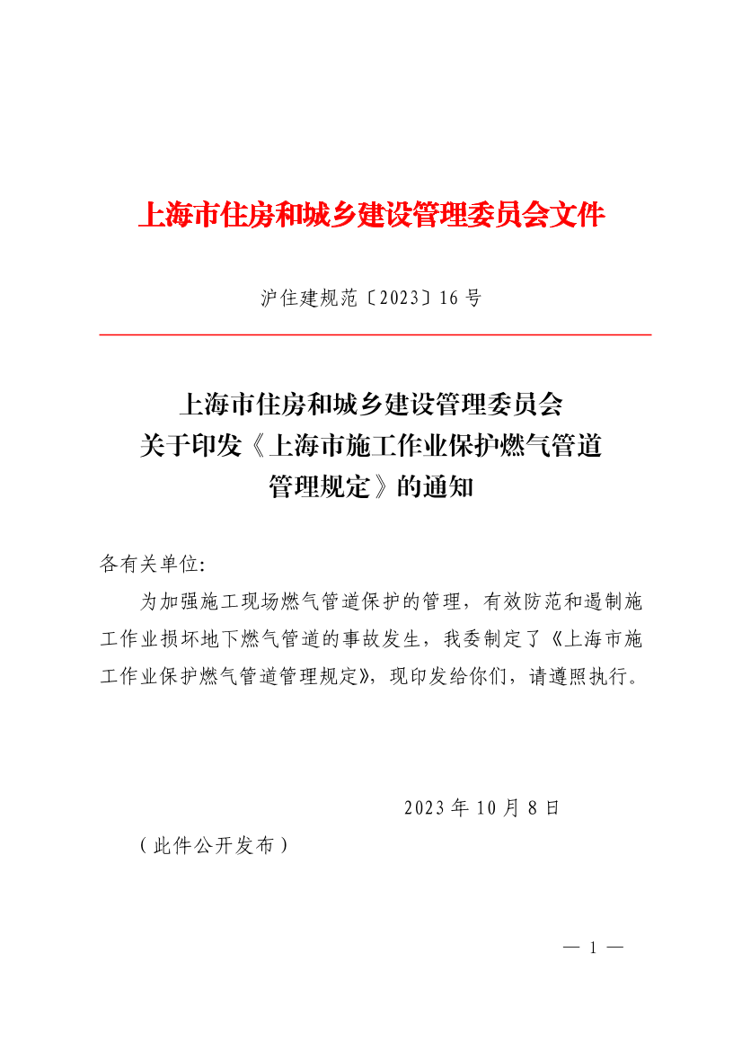 关于印发《上海市施工作业保护燃气管道管理规定》的通知