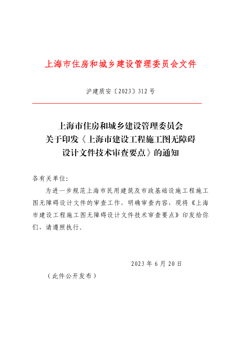 关于印发《上海市建设工程施工图无障碍设计文件技术审查要点》的通知
