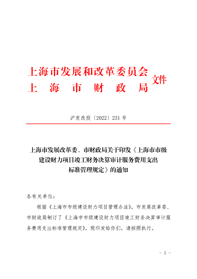 根据《上海市市级建设财力项目管理办法》,市发展改革委、市财政局制订了《上海市市级建设财力项目竣工财务决算审计服务费用支出标准管理规定》,现印发给你们,请按照执行。