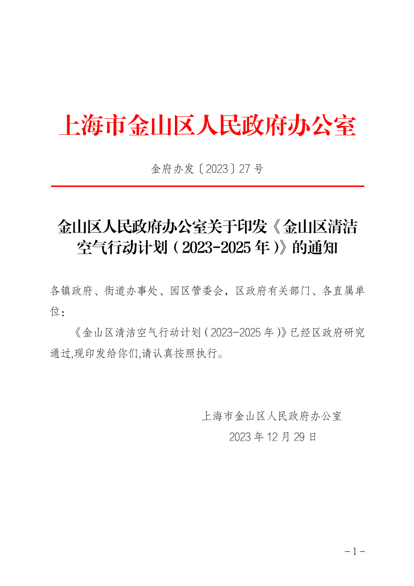 《金山区清洁空气行动计划(2023-2025年)》已经区政府研究通过,现印发给你们,请认真按照执行。