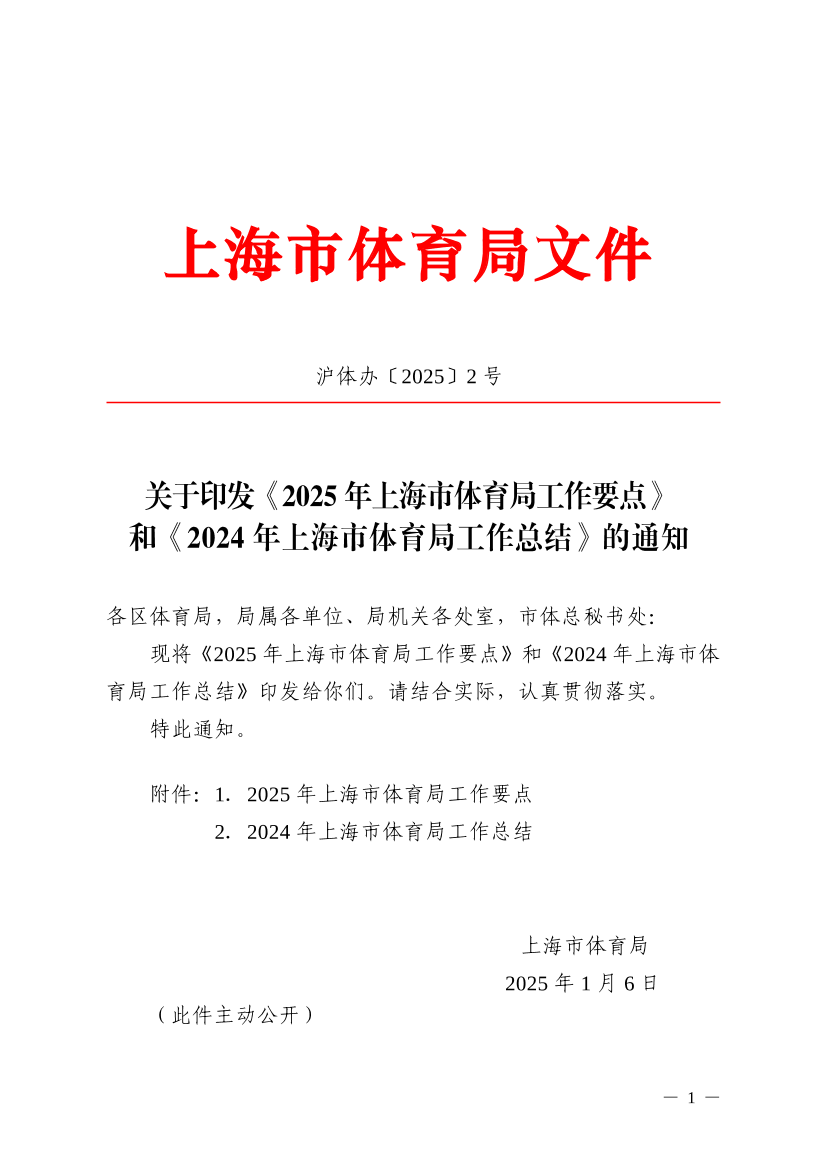 现将《2025年上海市体育局工作要点》和《2024年上海市体育局工作总结》印发给你们。请结合实际,认真贯彻落实。