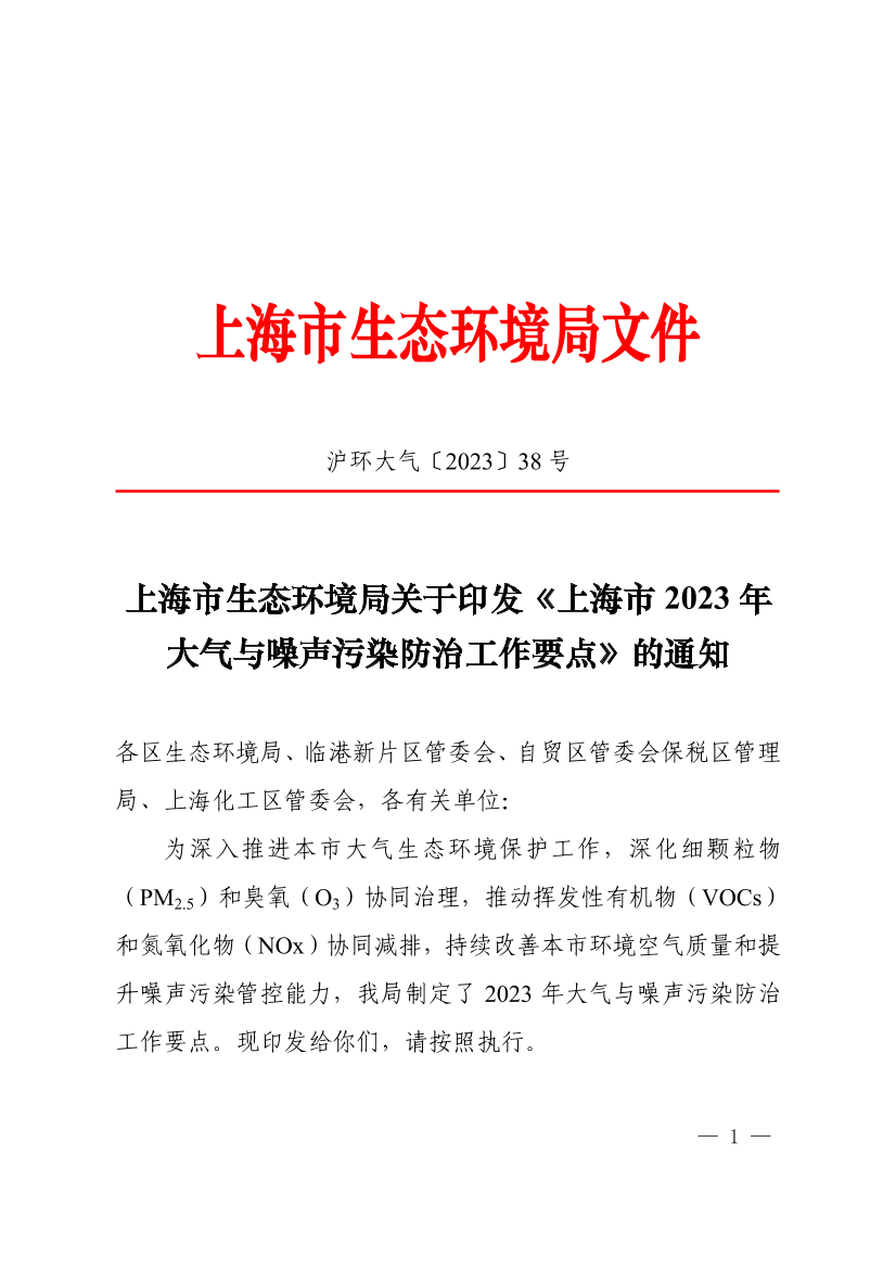 附件:1. 上海市2023年大气与噪声污染防治工作要点