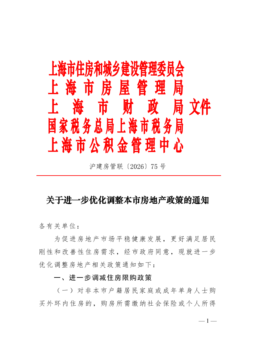(一)对非本市户籍居民家庭或成年单身人士购买外环内住房的,购房所需缴纳社会保险或个人所得税的年限,调整为购房之日前连续缴纳满1年及以上。