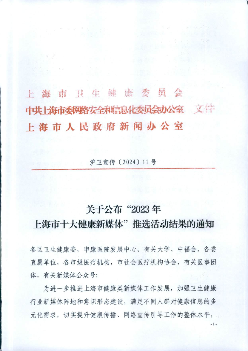 为进一步推进上海市健康类新媒体工作发展,加强卫生健康行业新媒体阵地和意识形态建设,满足不同人群对健康信息的多元化需求,切实提升健康传播、网络宣传引导工作的整体水平,市卫生健康委、市委网信办、市政府新闻办联合开展了“2023年上海市十大健康新媒体”推选活动。