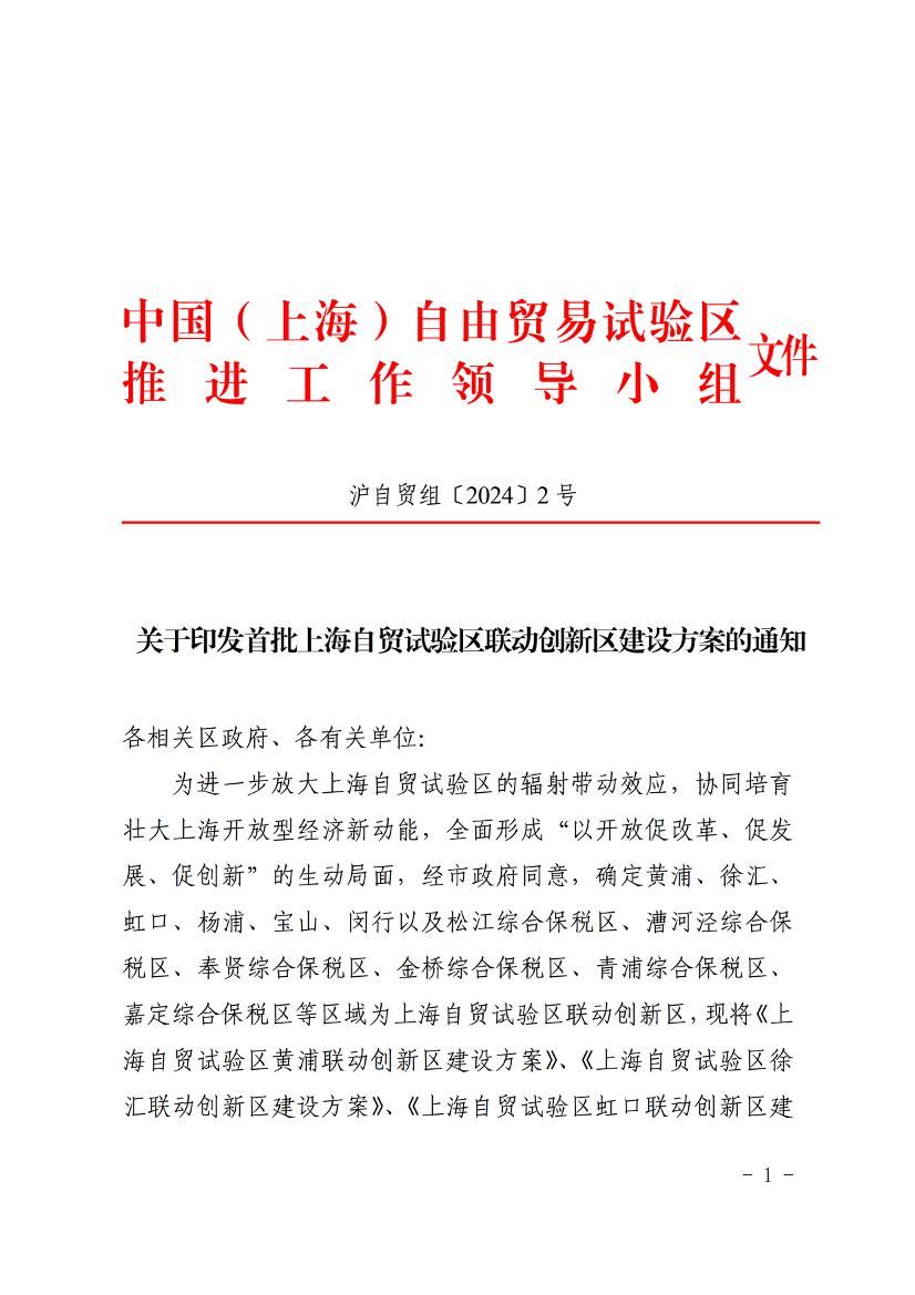 附件:1.上海自贸试验区黄浦联动创新区建设方案