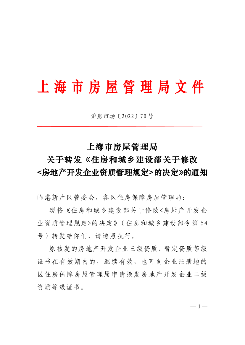 上海市房屋管理局关于转发《住房和城乡建设部关于修改<房地产开发企业资质管理规定>的决定》的通知