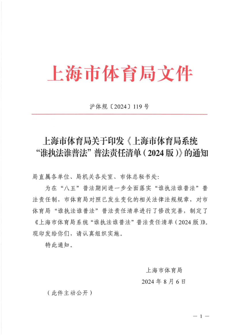 为在“八五”普法期间进一步全面落实“谁执法谁普法”普法责任制,市体育局对照已发生变化的相关法律法规规章,对市体育局“谁执法谁普法”普法责任清单进行了修改完善,制定了《上海市体育局系统“谁执法谁普法”普法责任清单(2024版)》。现印发给你们,请认真组织实施。