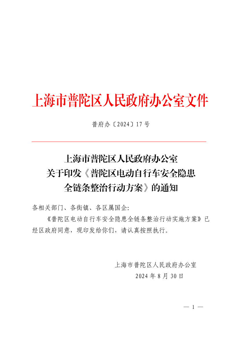 普陀区电动自行车安全隐患全链条整治行动实施方案