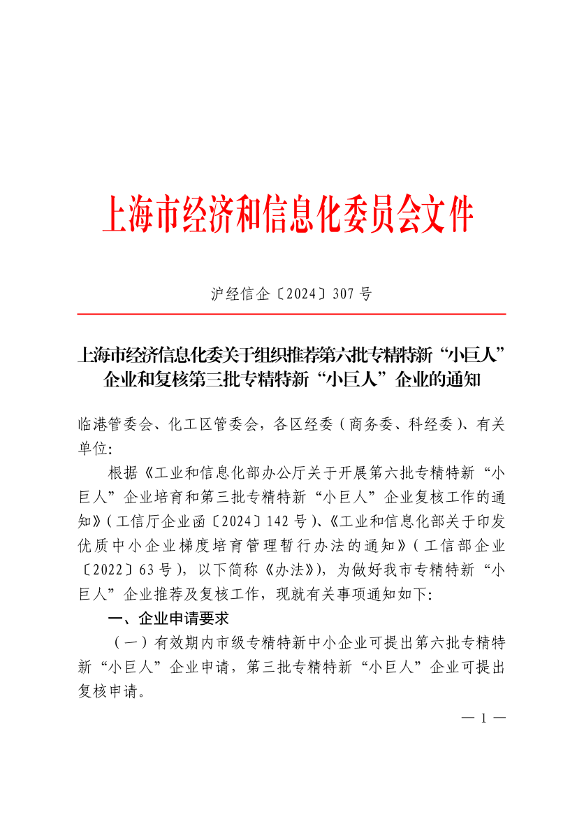 (一)有效期内市级专精特新中小企业可提出第六批专精特新“小巨人”企业申请,第三批专精特新“小巨人”企业可提出复核申请。