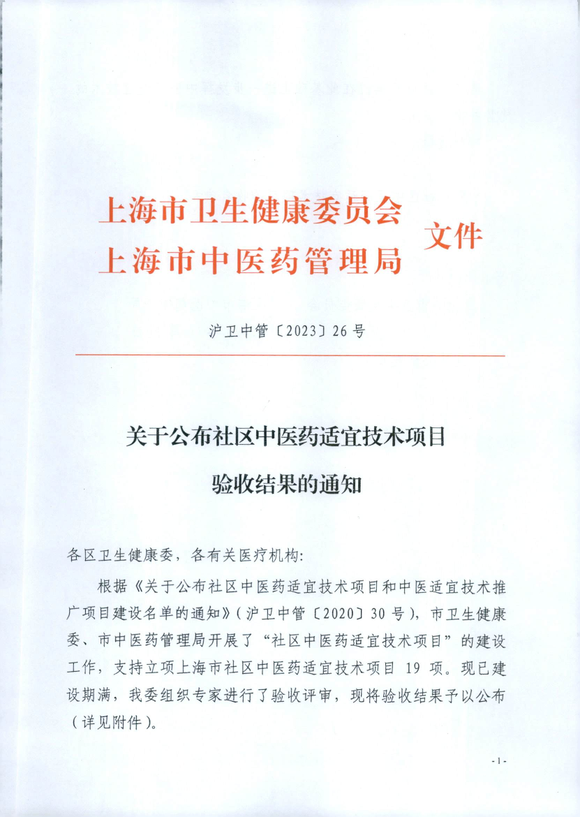 根据《关于公布社区中医药适宜技术项目和中医适宜技术推广项目建设名单的通知》(沪卫中管〔2020〕30号),市卫生健康委、市中医药管理局开展了“社区中医药适宜技术项目”的建设工作,支持立项上海市社区中医药适宜技术项目19项。现已建设期满,我委组织专家进行了验收评审,现将验收结果予以公布(详见附件)。