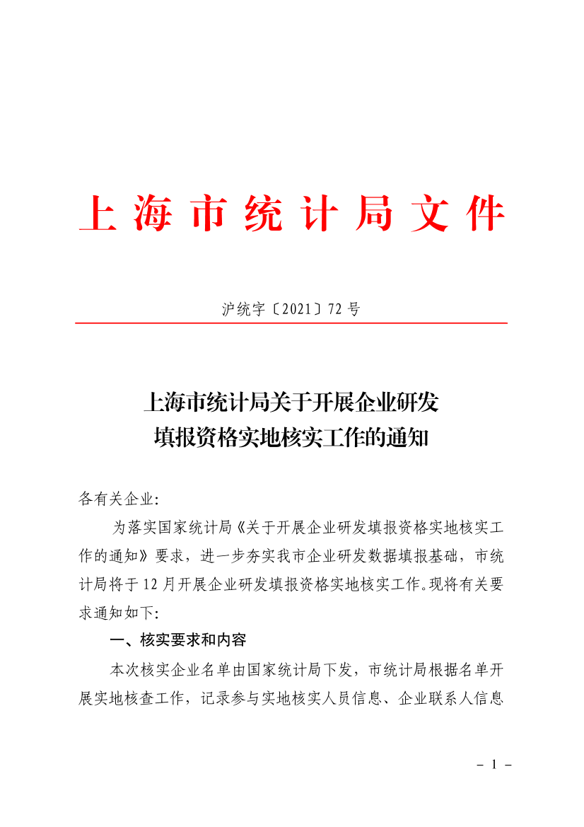 为落实国家统计局《关于开展企业研发填报资格实地核实工作的通知》要求,进一步夯实我市企业研发数据填报基础,市统计局将于12月开展企业研发填报资格实地核实工作。现将有关要求通知如下: