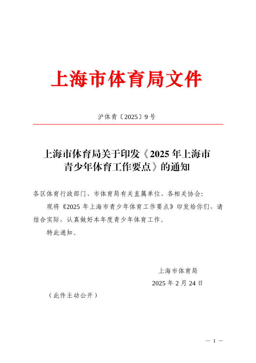 现将《2025年上海市青少年体育工作要点》印发给你们,请结合实际,认真做好本年度青少年体育工作。