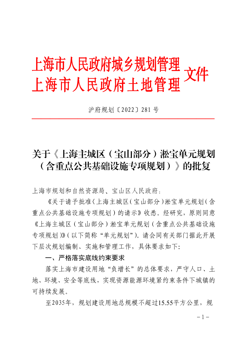 《关于请予批准〈上海主城区(宝山部分)淞宝单元规划(含重点公共基础设施专项规划)的请示》收悉。经研究,原则同意《上海主城区(宝山部分)淞宝单元规划(含重点公共基础设施专项规划)》(以下简称“单元规划”)。请会同有关部门据此开展下层次规划编制、实施和管理工作,具体要求如下: